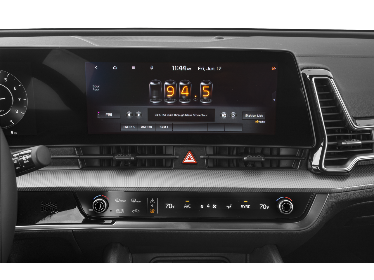 - Radio: AM/FM/HD Audio System -inc: 12.3" touchscreen w/navigation, 400 W w/HALOsonic harman/kardon sound system, 8 speakers including subwoofer, wired Apple Carplay and Android Auto, UVO telematics, voice recognition, SiriusXM, steering wheel mounted audio controls and Bluetooth phone and streaming audio