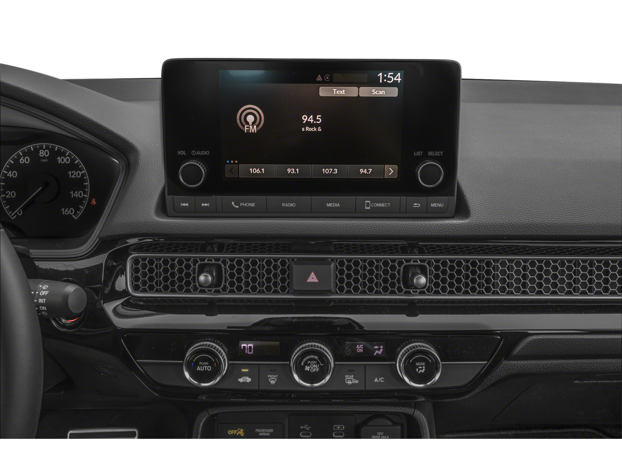 - Radio: 180-Watt Audio System -inc: 8 speakers, 7" color touchscreen, Bluetooth HandsFreeLink and streaming audio, Speed-Sensitive Volume Compensation (SVC), Radio Data System (RDS), HondaLink, Apple CarPlay and Android Auto compatibilities and 3.0-amp USB-C smartphone/audio interfaces in front seats